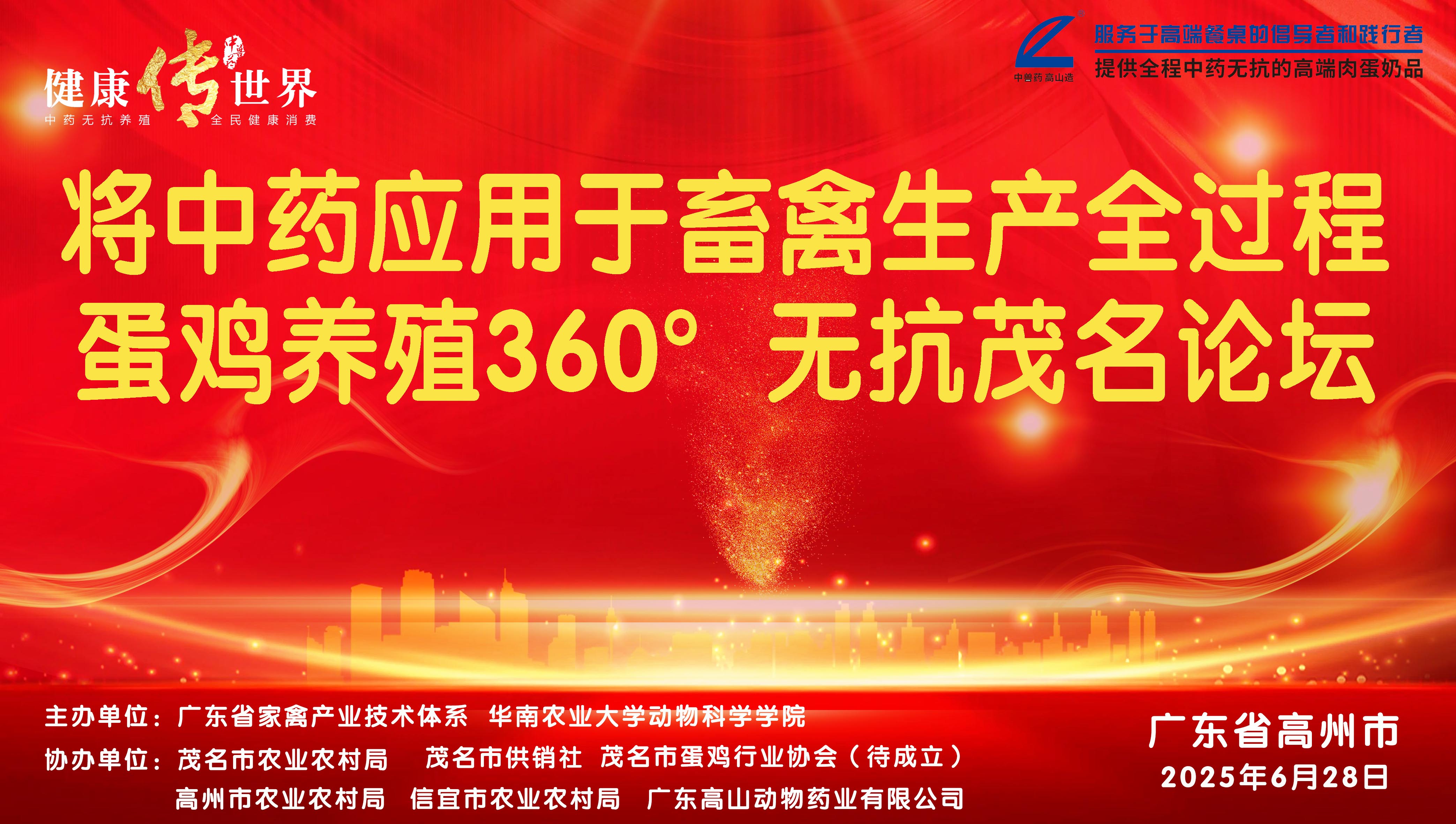 廣東高山動物藥業有限公司誠摯邀請您來參加,2025年6月28日在廣東省高州市舉辦的《蛋雞養殖360°無抗茂名論壇》!