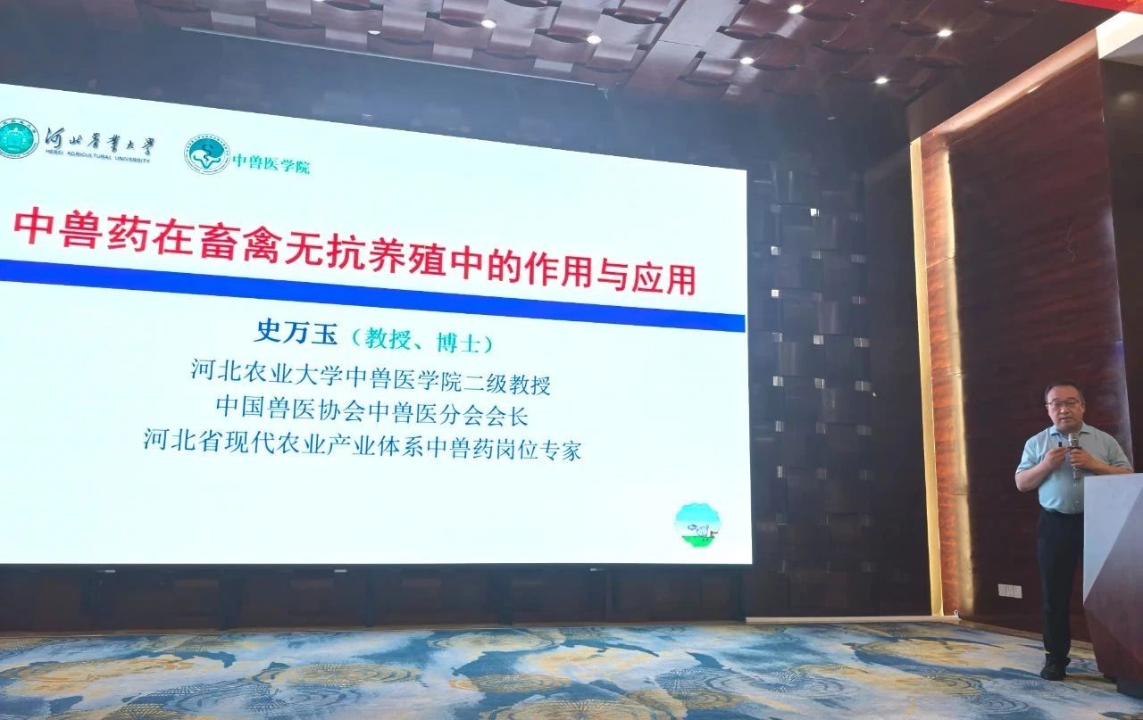 河北農(nóng)業(yè)大學(xué)中獸醫(yī)學(xué)院二級教授、中國獸醫(yī)協(xié)會中獸醫(yī)分會會長、河北省現(xiàn)代農(nóng)業(yè)產(chǎn)業(yè)體系中獸藥崗位專家、博士,史萬玉教授作《中獸藥在畜禽無抗養(yǎng)殖中的作用與應(yīng)用》報(bào)告,首先從當(dāng)前畜禽養(yǎng)殖存在的主要問題和國家新型中獸藥產(chǎn)品研發(fā)現(xiàn)狀作了詳細(xì)的講解,同時(shí)指出中獸藥在畜禽無抗養(yǎng)殖中可用于保健、預(yù)防和治療,提高畜禽的生產(chǎn)性能,改善畜禽的產(chǎn)品質(zhì)量,改善飼料的品質(zhì)等。最后指出隨著政府對動物源性食品安全問題的極大關(guān)注以及民眾對食品安全重要性認(rèn)識的不斷提高,中獸醫(yī)藥必將在畜禽綠色健康養(yǎng)殖中發(fā)揮更大的作用。