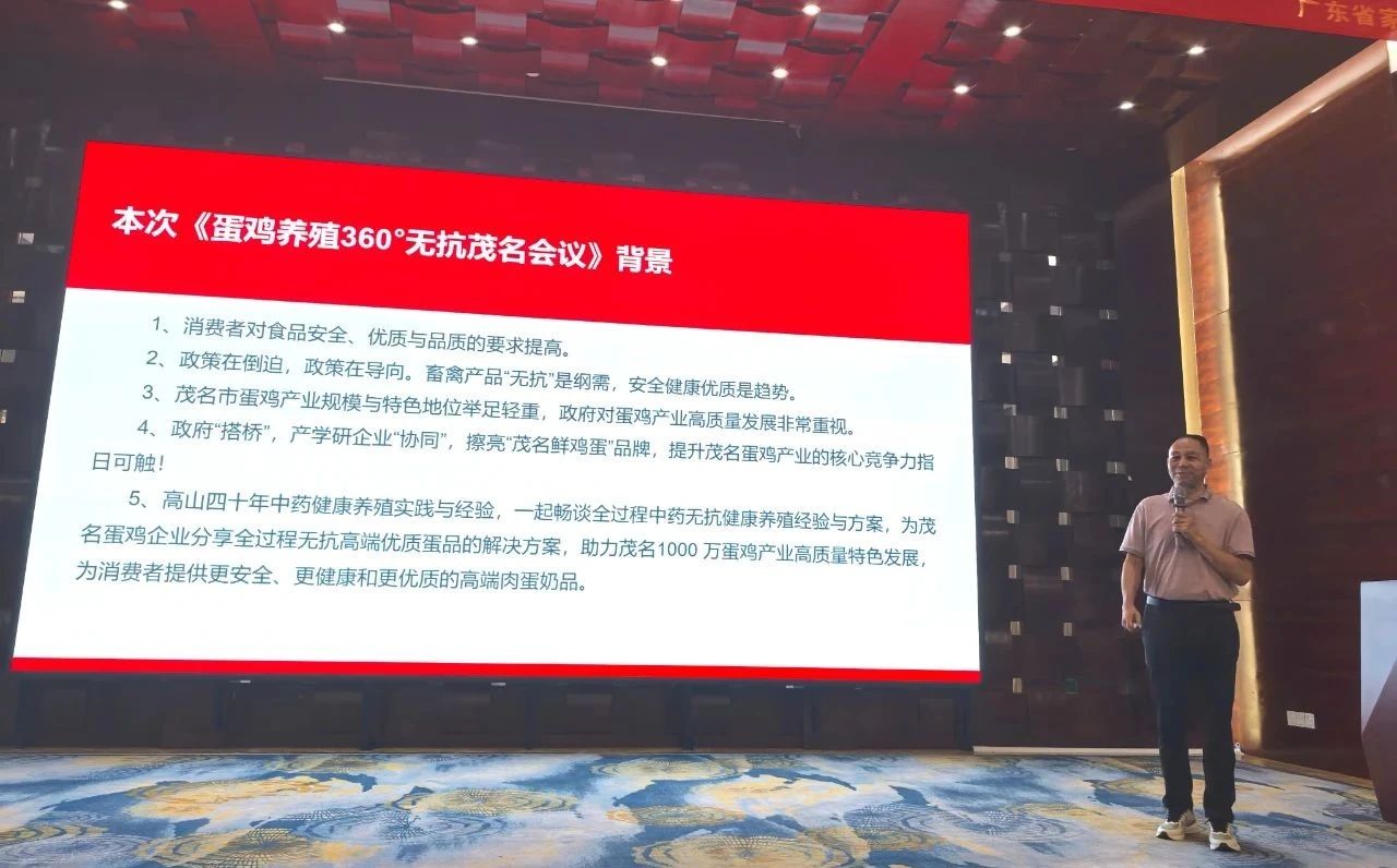 圓桌會議現(xiàn)場華南農(nóng)業(yè)大學(xué)謝青梅教授主持《蛋雞養(yǎng)殖360°無抗圓桌會議》。會上專家和嘉賓代表們表示要實(shí)現(xiàn)全過程無抗,需從種苗篩選、雞舍環(huán)境、飼料品質(zhì)把控、生物安全防護(hù)以及中藥防控疫病等多方面著手。中藥既能有效預(yù)防疫病,減少蛋禽發(fā)病機(jī)率,又能提升蛋禽免疫力和生產(chǎn)性能,還能改善肉蛋奶品質(zhì),從源頭保障食品安全。針對茂名千萬蛋雞產(chǎn)業(yè)發(fā)展,專家與企業(yè)代表提出以下核心建議:1、?走品質(zhì)和品牌的差異化與特色發(fā)展道路(史萬玉教授建議):茂名應(yīng)立足大灣區(qū),又切合廣東實(shí)際,聚焦?高品質(zhì)和強(qiáng)品牌雞蛋?的發(fā)展道路,而非走盲目擴(kuò)產(chǎn)道路,比如,廣東存欄3000萬,河北則號稱近3億存欄,一個地級市就超3000萬。茂名不要拼量而拼質(zhì),要利用本地中獸藥企業(yè)(如高山藥業(yè))技術(shù)優(yōu)勢,發(fā)展蛋雞全過程無抗養(yǎng)殖特色產(chǎn)業(yè),打造“茂名雞蛋”品牌,參考已有知名度的“東東蛋”模式。茂名毗鄰港澳,可針對高端市場針對更安全更健康食品的需求,建立直達(dá)供應(yīng)渠道,提質(zhì)提量,提升產(chǎn)品溢價(jià)能力。2、?產(chǎn)業(yè)實(shí)踐建議?(企業(yè)代表意見):?精細(xì)化管理?:抓住政策支持機(jī)遇,學(xué)習(xí)先進(jìn)養(yǎng)殖技術(shù);?品質(zhì)優(yōu)先?:嚴(yán)控雞蛋質(zhì)量,杜絕以次充好,建立長期口碑;?產(chǎn)能目標(biāo)?:整合政府、高校(如華農(nóng))、企業(yè)資源,爭取成為全國第三大蛋雞產(chǎn)業(yè)縣級市(對標(biāo)邯鄲、黃岡)。3、發(fā)展的?關(guān)鍵方向?:以中藥無抗技術(shù)為核心,通過“品質(zhì)→品牌→規(guī)模”路徑實(shí)現(xiàn)高質(zhì)量發(fā)展。