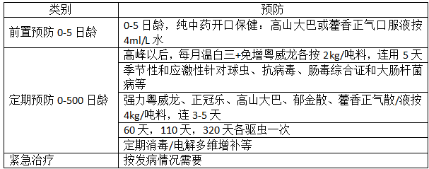 基礎方案原則為:做好一個飼料基礎大保健的同時,做好前置預防、定期預防和緊急治療等三階段性方案結合。
