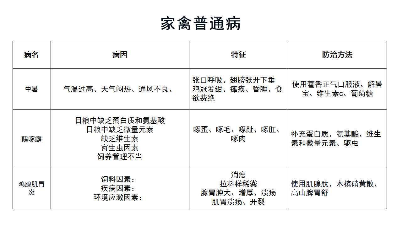 2、營養方面:夏天飼喂高蛋白飼料,引起雞群過肥,機體散熱功能變差,容易引起中暑。