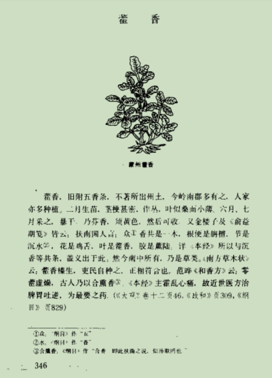 清代黃宮繡撰著《本草求真》也對藿香簡述:“藿香專入脾、胃、肺。辛香微溫,香甜不峻。但藿香正氣能助醒胃以辟諸邪。故凡外來惡風內侵,而見霍亂嘔吐不止者,須用此投服。如藿香正氣散,用此以理肺、脾之氣,俾正氣通而邪氣除。俾其胸開氣寬,飲食克進。