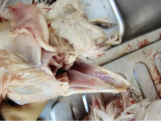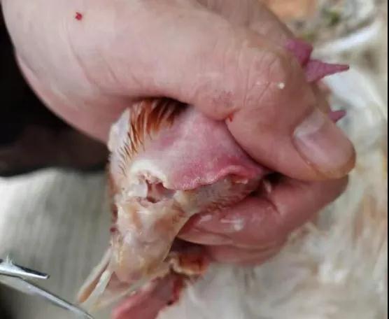 從排糞端先病發,然后向其他地方蔓延,從一區傳到二區,病發雞群達10萬只,診斷為家禽傳染性鼻炎并發流行感冒,表現為腫頭腫臉諸證。