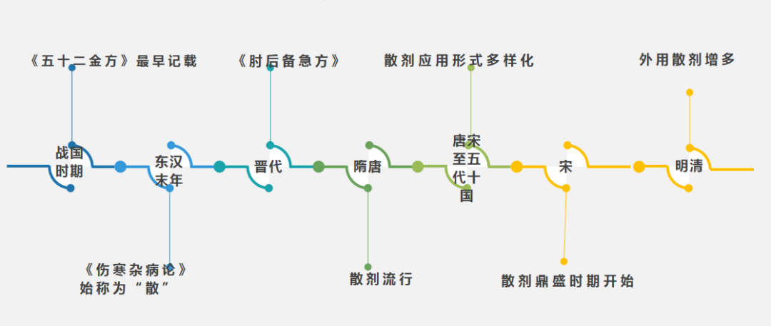 中藥散劑的應(yīng)用,由來已久,這是一個“古老”的中藥劑型。從戰(zhàn)國時期開始,散劑的雛形就開始出現(xiàn),到了東漢,張仲景開始以“散”為劑型命名。隨著朝代的更替,以及適用于戰(zhàn)事和生活的需要,散劑的應(yīng)用形式開始多樣化,如口服、煎服和外用等等。古人曰,“散者妝也,去急病用之”。縱觀中藥散劑的發(fā)展脈絡(luò),可見中醫(yī)中藥學(xué)的“散劑”劑型的歷史沉淀是頗深的。