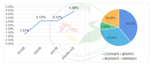 2019-2022年滑液囊支原體在雞群發病率以及在不同品種發病比例(摘自網絡收集)