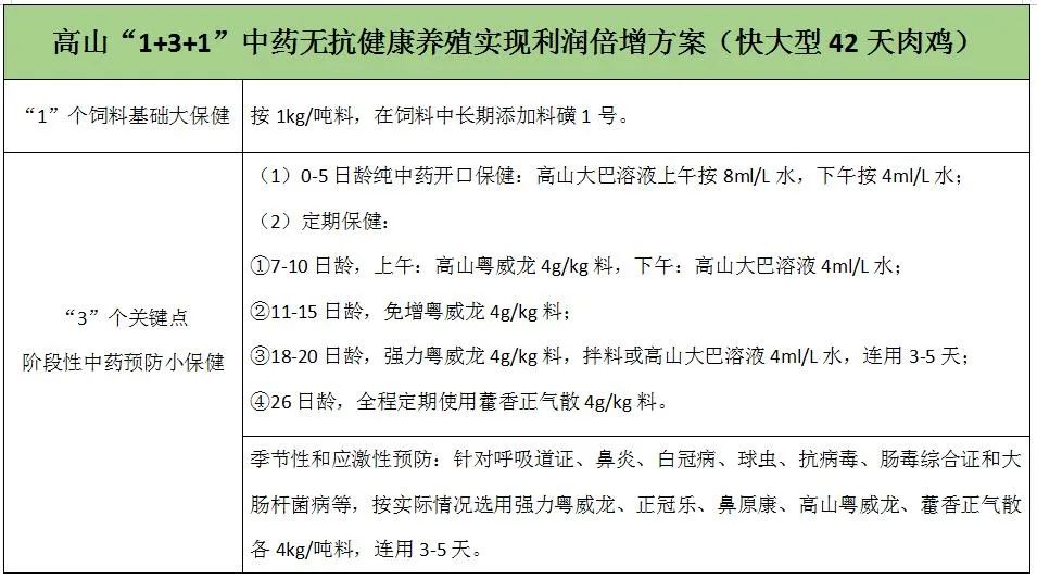 附:高山“1+3+1”快大型42天肉雞無抗健康養殖方案