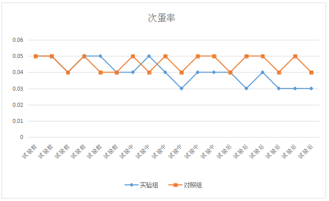 根據(jù)以上分析各類次蛋原因,由圖2可以看出,在蛋雞喂料的同時(shí)添加蛋雞寶一起混料喂,可以幫助蛋雞產(chǎn)次蛋率比傳統(tǒng)飼養(yǎng)對(duì)照組的次蛋率低。