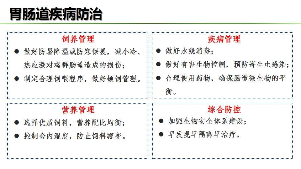 養(yǎng)雞就是養(yǎng)腸道,要想養(yǎng)得好,多用中藥預防保健。使用中藥做好預防保健,既能改善生長均勻度,提高健康度,也有助于預防肌腺胃炎的發(fā)生,生長后過程更健康。有助于降低生產(chǎn)成本,有助于養(yǎng)殖效益增多也是中藥健康無抗養(yǎng)殖的基礎保障。