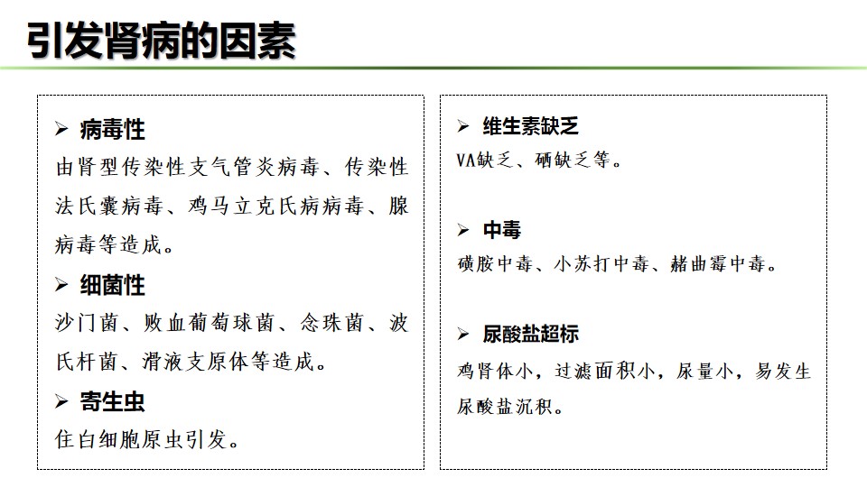 從中醫來講,肝腎同源:肝藏血,腎藏精,肝血由腎精所化生,兩者相互滋養與轉化,精血同源。同時,脾臟是機體重要的免疫器官,腎虧則脾虛,導致機體免疫功能下降。再者,會造成脾胃不和,導致消化吸收能力下降。因此,養雞必須要肝腎同調,保肝護腎,定期使用中藥保障家禽健康,減少肝腎疾病發生。高山百度醫生建議用好以下產品做好防控。