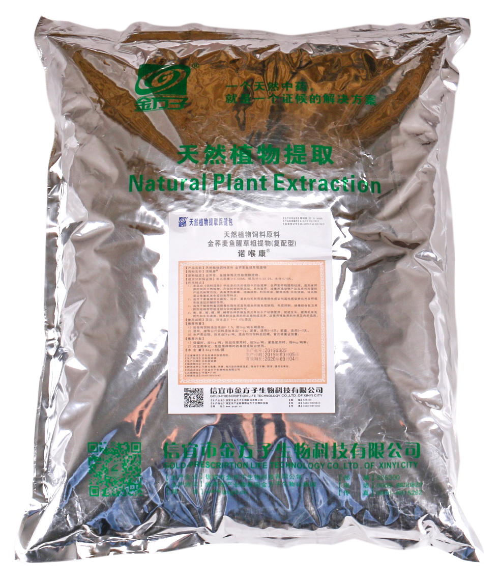 由《飼料原料目錄》中收錄天然植物中的魚腥草、金蕎麥等粗提物組成,可在飼料中長期添加,具有清熱解毒、排痛消腫、利尿除濕、健胃消食,活血消癰,祛風除濕及修復機體免疫功能等特點。