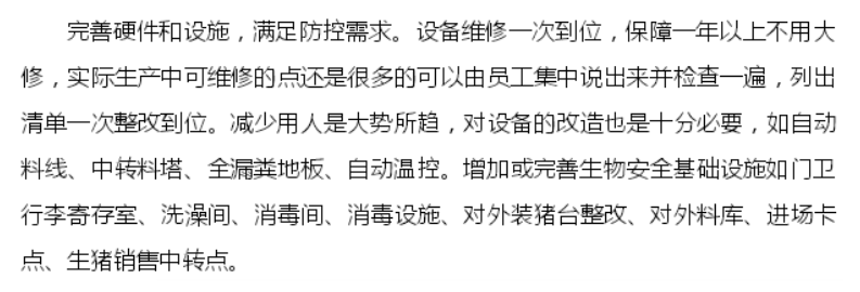 為了讓復養由難變易,可實施可復制,我們通過線上訪問和實地考察,把所有調研的豬場失敗、成功經驗進行了系統的梳理,總結了一套包含人、車、物、料、廚、害、廢、舍、水等11個關鍵點的綜合防非復養系統。