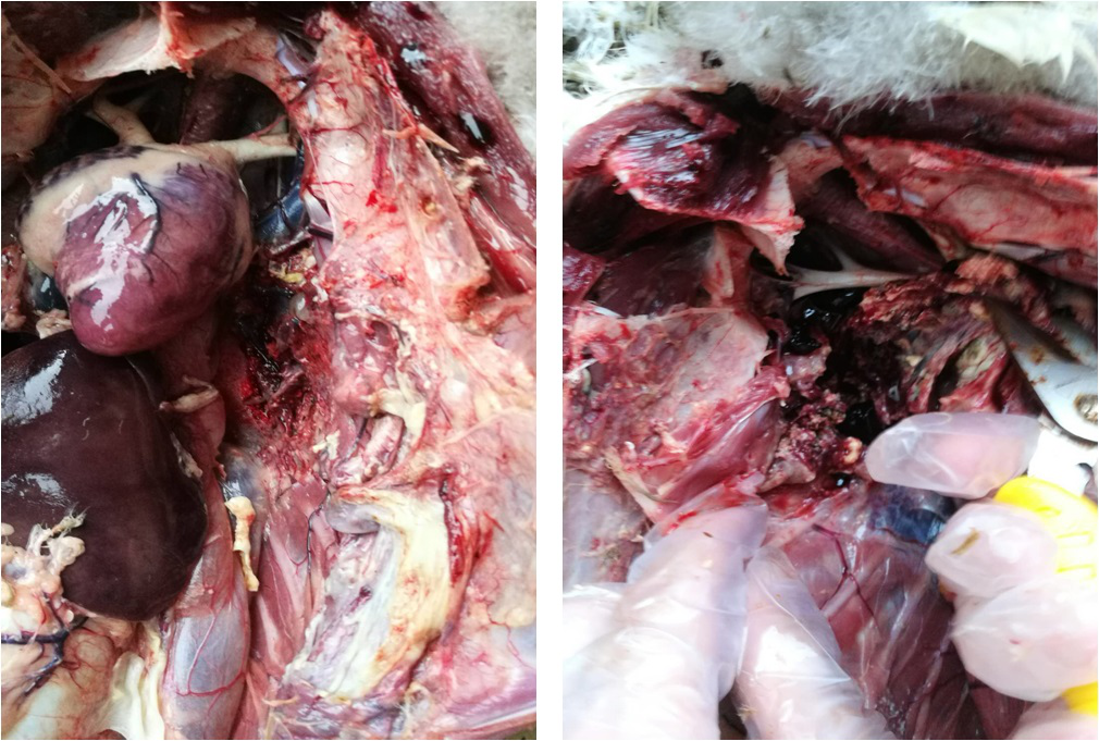 2月份開始出現(xiàn)采食量減少,糞便異常并帶有發(fā)臭,呼吸道綜合證;剖檢見氣囊和氣管粘膜附著黃色酪物,輸卵管炎證,心包,肝變,腸內(nèi)出現(xiàn)毒素中毒證等;表現(xiàn)產(chǎn)蛋率低和孵化率低;每天持續(xù)有死亡,少則5只到30多只不等,多則去到94只,一直用藥均不見好轉(zhuǎn)。