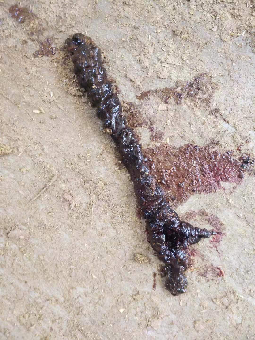 每天灌腸三次。四天后,無血塊排出,大便正常,牛有食欲,反芻正常,已恢復正常。