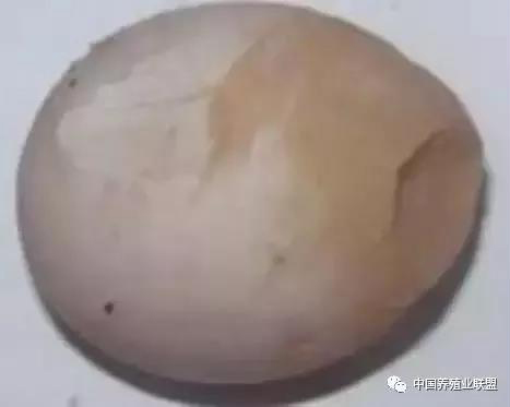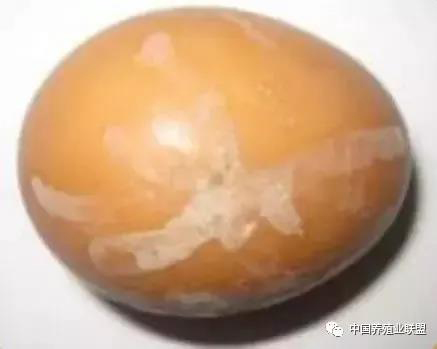 當雞蛋處于蛋殼腺囊時破損,但是母雞在產蛋之前又經自體修復。