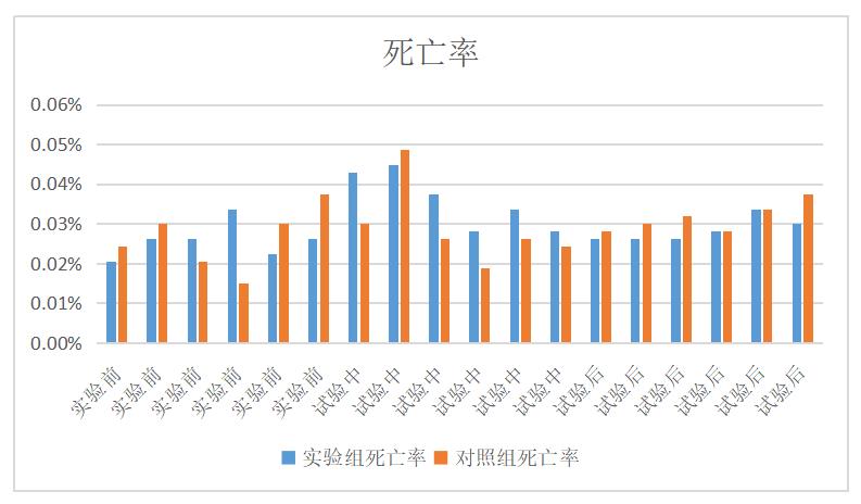 從上表中可以看出,試驗組累積死亡率:試驗后<試驗前<實驗中;累積破蛋率:試驗后<試驗中<實驗前;累積日耗料:試驗后<試驗中<試驗前;累積日產蛋率:試驗后<試驗中<試驗前。