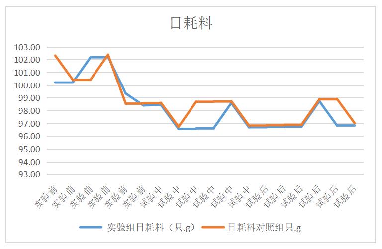 3、試驗組耗料低于對照組(同比下降了3.3%);
