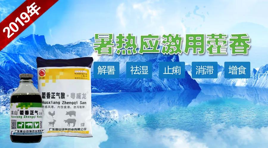 高山藿香正氣抗畜禽暑熱應激,具有見效快、恢復快和多功能等特點,采用本地南藥鮮廣藿香,鮮紅紫蘇葉等傳統,優質,道地藥材,通過中藥材鮮取,中藥蒸餾鮮液、蒸餾揮發油、中藥蒸餾水提液一起濃縮而成,具有比西藥無與倫比的對比優勢。解暑,祛濕,止痢,消滯,快速恢復采食量,促進消化吸收,促進生長發育,不影響生產性能,更有效更安全更理想。解除畜禽的暑熱應激問題,首選高山藿香正氣口服液/散。