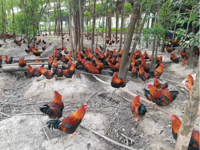 我國當前有相當一部分養雞是在原山態林地大群散養著的地方優良品種,通常是配置棲架及板條地面的簡易雞棚構成,一個雞棚一般可容納1000-6000只不等,并配有料桶、飲水器,散布在樹林的空檔處。這種沒有經過過多人為干預的自然生長的樹林環境條件下養出的家禽其品質口感是非常優質的。