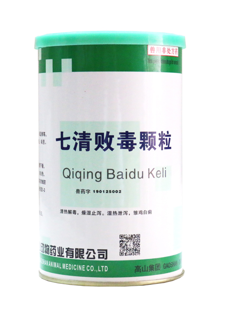 通用名稱:七清敗毒顆粒【主要成分】黃芩、虎杖、白頭翁、苦參、板藍(lán)根等。【性狀】本品為黃棕色至棕褐色顆粒;味苦。【功能】清熱解毒,燥濕止瀉。【主治】濕熱泄瀉,雛雞白痢。證見發(fā)熱怕冷、精神沉郁,翅膀下垂,食欲減少或廢絕,口渴多飲,排白色、淡黃或淡綠色稀糞,糞便粘連在泄殖腔周圍。張口呼吸,死亡多在出殼后2-3周,3周齡以上者較少死亡。【用法與用量】混飲:每1L水,禽2.5g。【不良反應(yīng)】按規(guī)定劑量使用,暫未見不良反應(yīng)。【注意事項(xiàng)】暫無規(guī)定。【包裝規(guī)格】200g*30罐/件